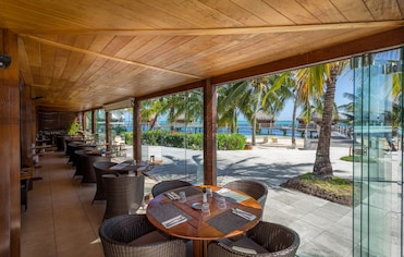 Fedezze fel a szálloda fehér homokos magánstrandját. Sznorkelezzen, kajakozzon, vagy pihenjen a strandon a nyugágyakon, mielőtt a tengerparti étteremben vacsorázik.