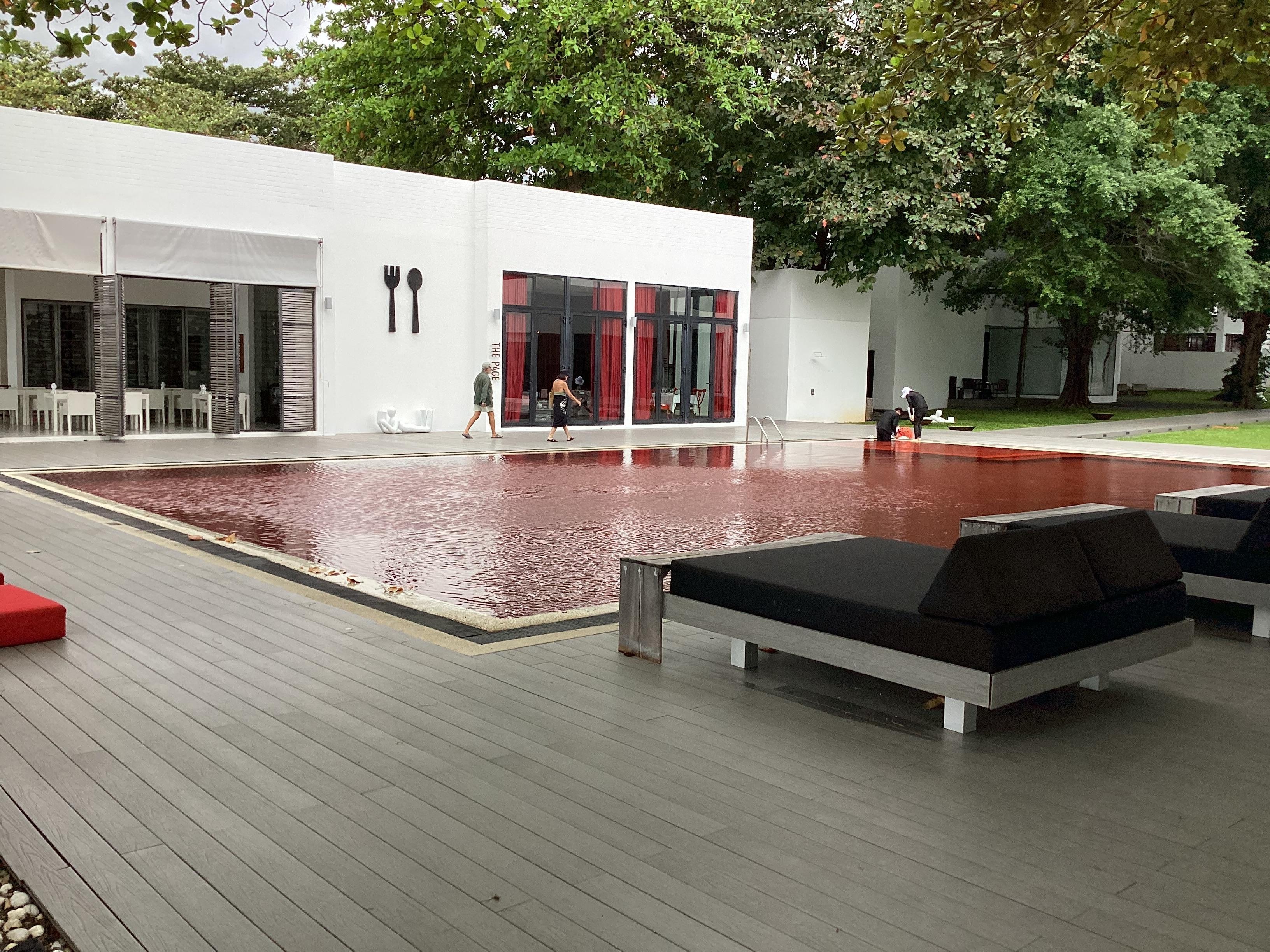 Pretty red pool. Great food and drinks. The surrounding areas are a bit tired and dirty. Rooms are a clean with a fresh style. Worth a stay if you want something a little less Thai like. This is more European vibe.