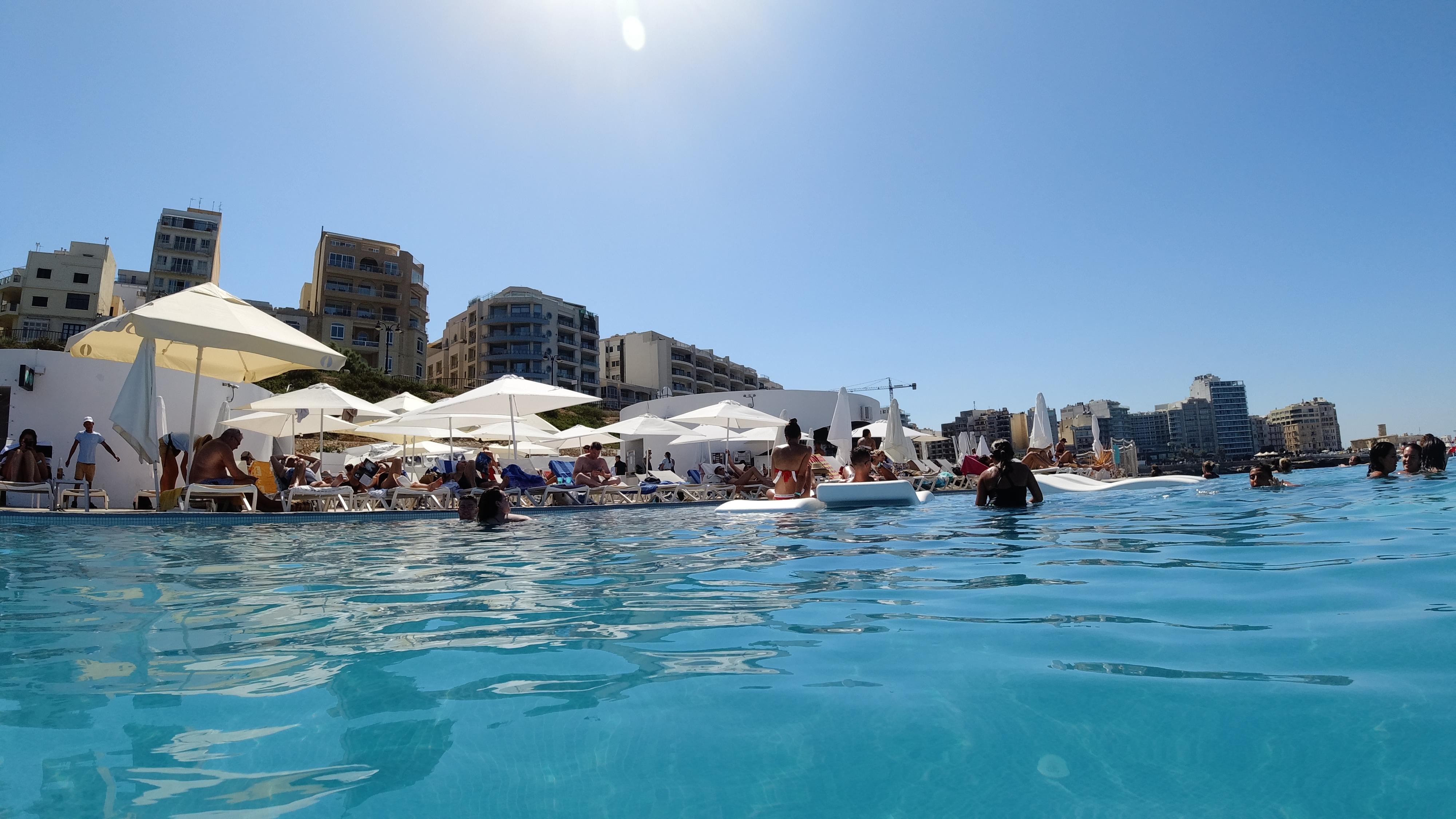 Mindkét medencét ingyenes kabinok, nyugágyak és napernyők szegélyezik. A szálloda medencére néző étterme és két medence melletti bárja kínál italokat és ételeket.